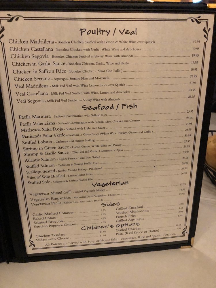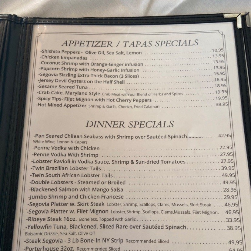 Segovia Tavern, a Spanish, Seafood, and Steakhouse establishment located in Oakland, NJ, offers a delightful dining experience. With options like Chicken Castellana and Shrimp & Garlic tapas, the menu showcases a variety of flavorful dishes. The Pork Chops in Garlic Sauce and Pork Chops Segovia are standout choices from the steaks and chops section. Customers praise the attentive staff, fantastic food, and pleasant atmosphere. While some note occasional slow service, the overall consensus is positive, with patrons raving about the delicious food and delightful ambiance. Whether you're in the mood for a romantic dinner or a gathering with friends, Segovia Tavern provides a range of amenities, from private dining to outdoor seating. Next time you visit, be sure to ask for Alvin, an excellent waiter who enhances the dining experience.